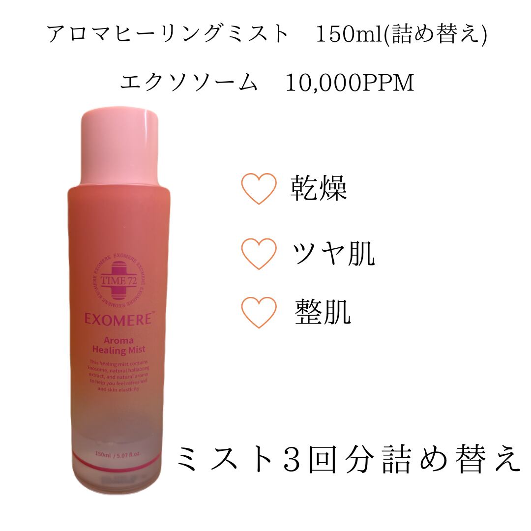 エクソソーム成分、天然ハラボン抽出水、天然アロマ成分が含まれており、爽やかな気分と皮膚の弾力性を助けるヒーリングミスト。